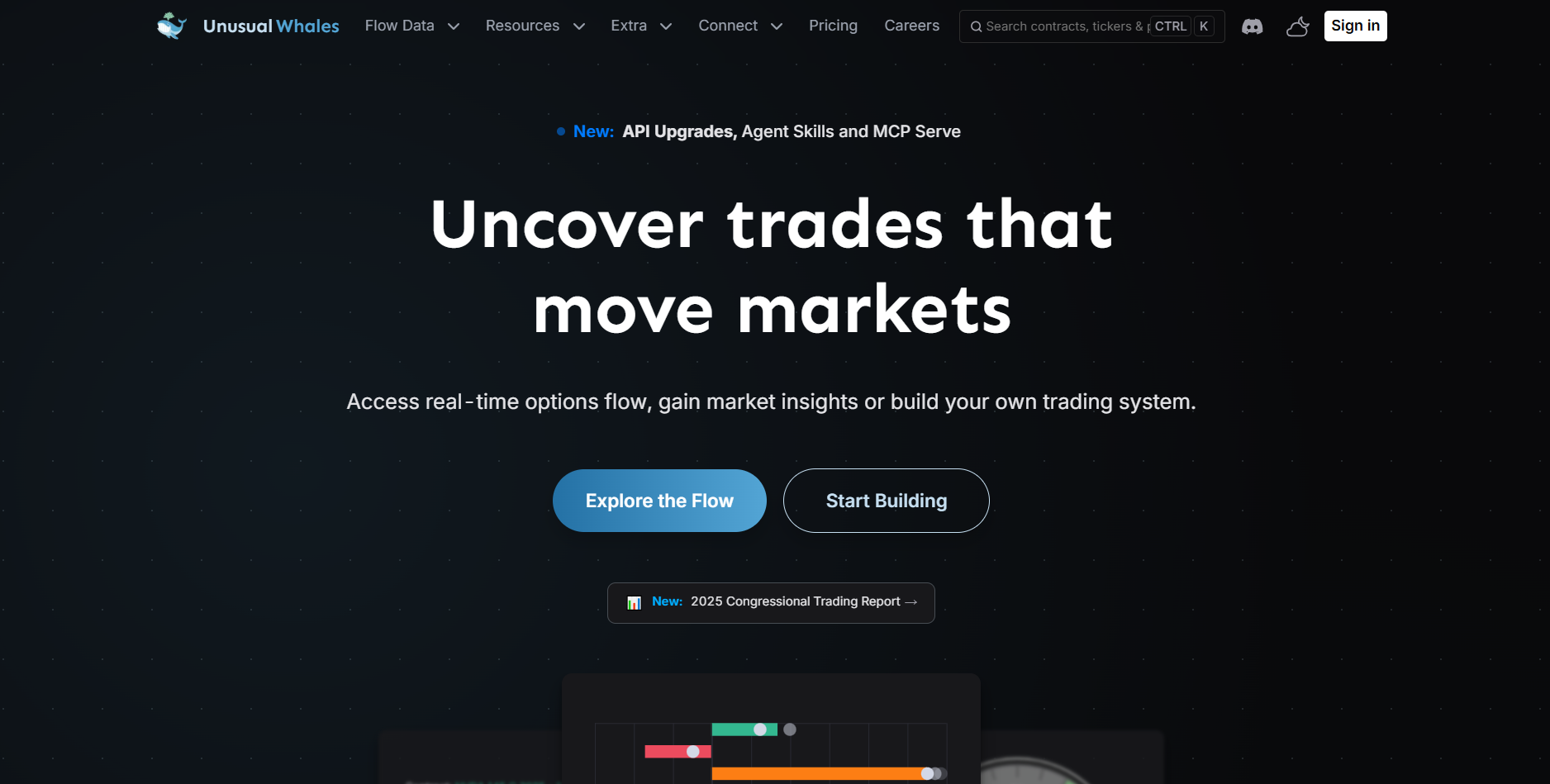 Unusual Whales is best known for analyzing options flow and financial market activity.