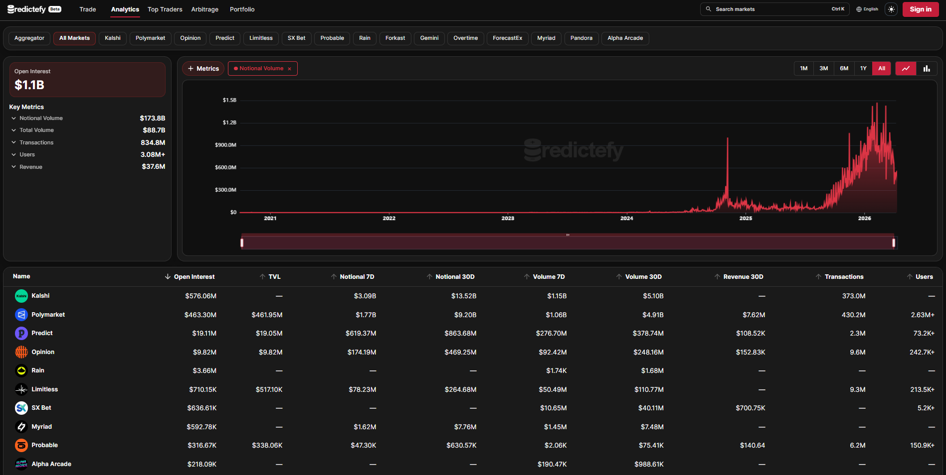 Among the leading platforms in 2026, Predictefy provides one of the most comprehensive analytics environments, combining cross-market data, arbitrage insights, and historical prediction market datasets.